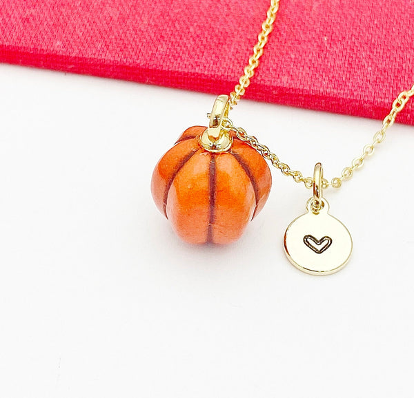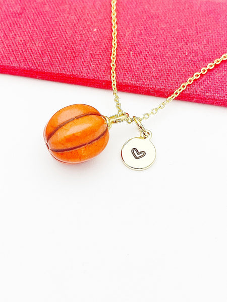 Best Halloween Fall Gift for Girlfriend, Best friend, Sister, Daughter, Granddaughter, Turquoise Gemstone Orange Pumpkin Necklace,