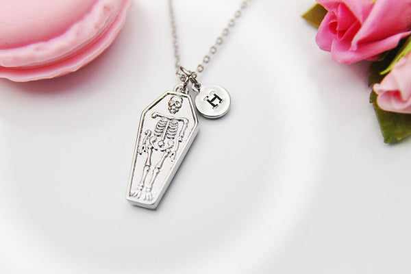 Best Halloween Gift for Best Friends, Girlfriends, Sister, Soul Sisters, Daughter, Silver Coffin Skeleton Necklace, Personalized Gift,