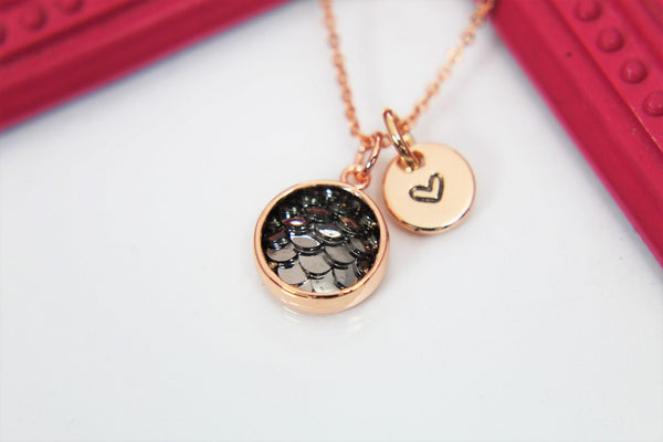 Best Halloween Gift for Girl, Rose Gold Black Mermaid Scale Necklace, Daughter Necklace, Daughter Jewelry, Christmas Gift,