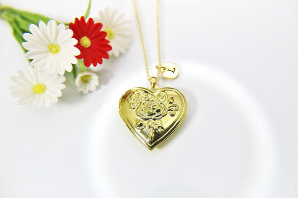 Best Mother's Day Gift for Mom, Grandmother, Great Grandma, Aunt, Gold Rose Necklace, Flower Locket, Keepsake Photo Frame Charm,