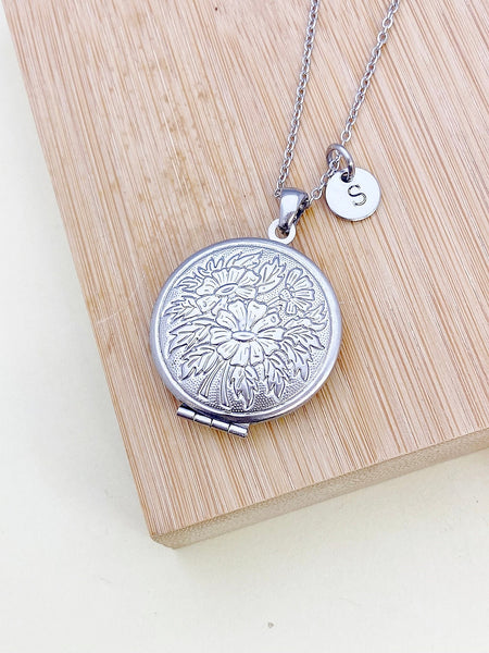 Best Mother's Day Gift for Mom, Grandmother, Great Grandma, Aunt, Stainless Steel Necklace, Flower Locket, Keepsake Photo Frame Charm,