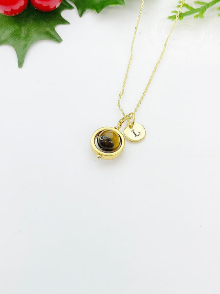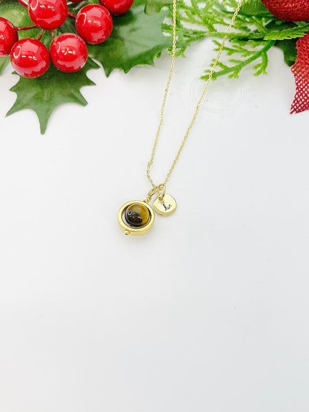 This is a beautiful natural Tiger Eye with hand stamped initial charm on stainless steel or brass chain.