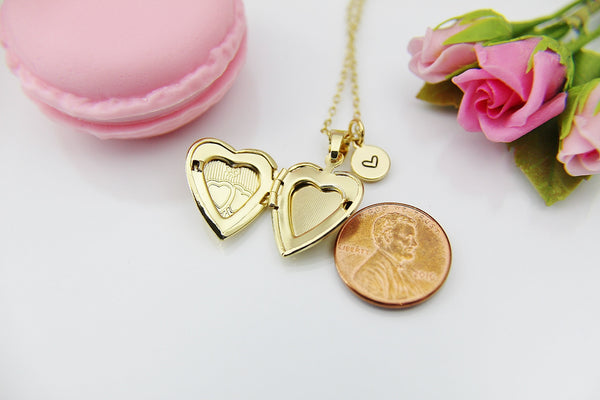 Best Christmas Gift for Girlfriends, Sister, Daughter, Granddaughter, Girls, Gold Heart Locket Necklace, Love, Keepsake Photo Frame,