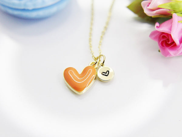 This is gold tone heart charm with hand stamped initial charm on brass or stainless-steel chain.