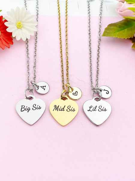 Big Sis Mid Sis Lil Sis Necklace, Heart, Big Sister Middle Sister Little Sister, Sisters Jewelry, Sister Gift, D569