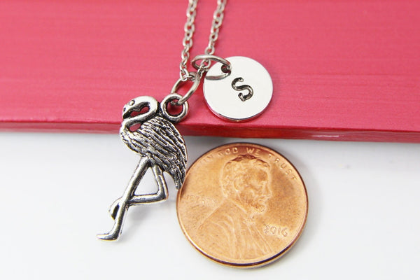 Bird Necklace, Crane Charm, Flamingo Crane Bird Jewelry Gift, Personalized Initial Gift, N4389