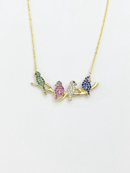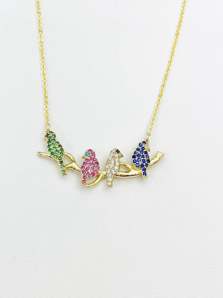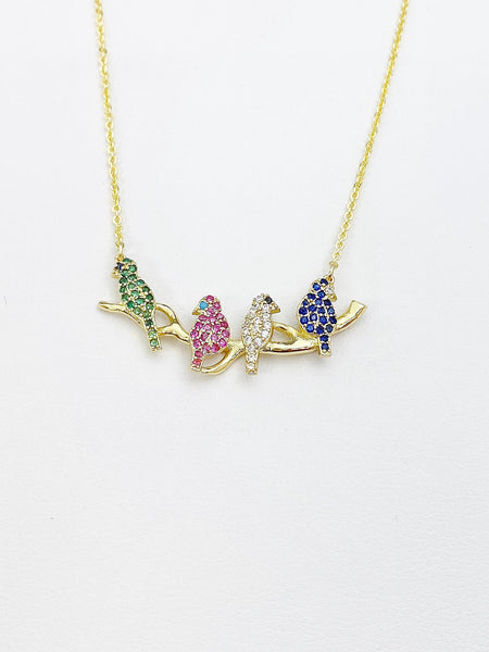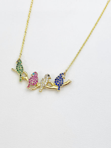 This is a gold-tone bird charm on brass/stainless steel 18 inches chain.