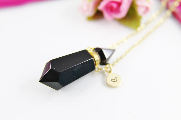 ♥ Natural Black Agate Pendants, Openable Perfume Bottle, with Golden Tone Brass Findings, Dyed & Heated, 39~42x14~16x13~14mm, Hole: 7mm, capacity: 1ml (0.03 fl. oz)