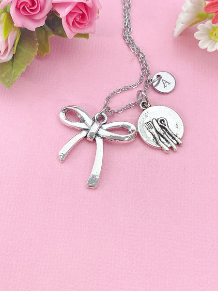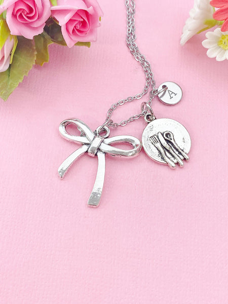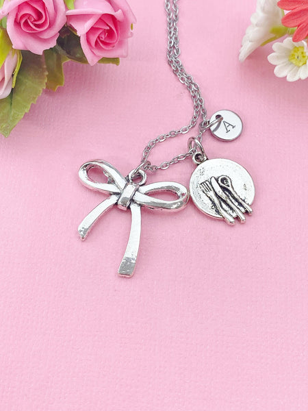 This is a silver -tone Bownote Kitchen Utensil Tableware Plate charm with hand stamped initial charm stainless steel 18 inches chain or bracelet or keyring.