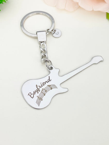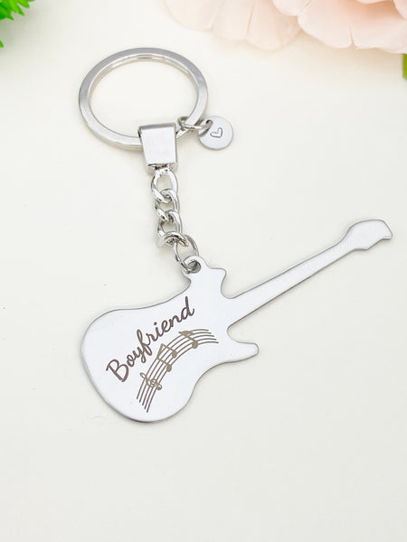 This is an engraving Boyfriend on stainless-steel with hand stamped initial charm on keyring.