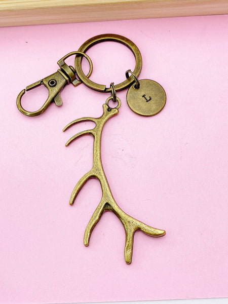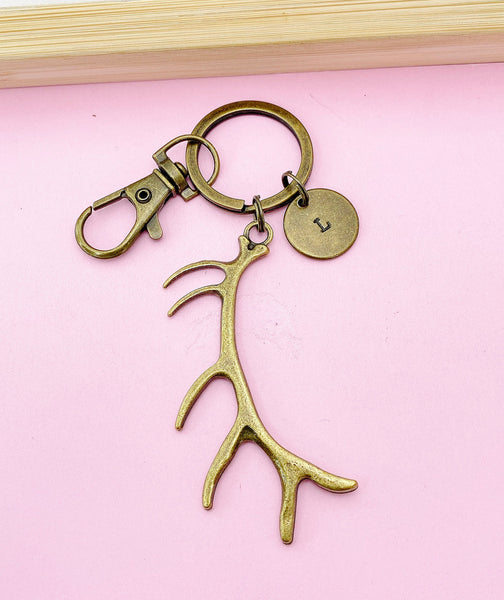 Bronze Deer Antler Charm Keychain, Elk Antler Charm, Silver Option, Personalized Gift, N2232