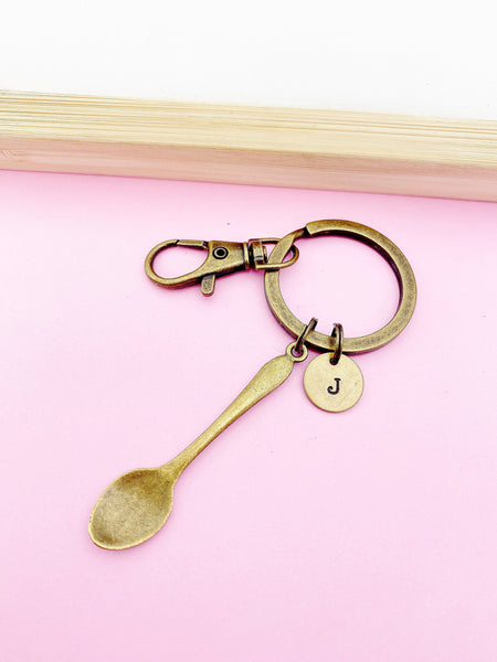 Bronze Kitchen Utensil Spoon Tableware Charm Keychain Gift Idea Personalized Customized Monogram Made to Order Jewelry, AN2663