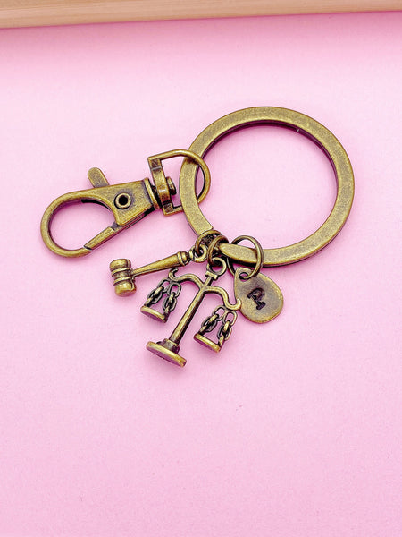 Bronze Lawyer Keychain Justice Scale Gavel Attorney Law School Graduation Gifts Ideas Personalized Made to Order, BN1387