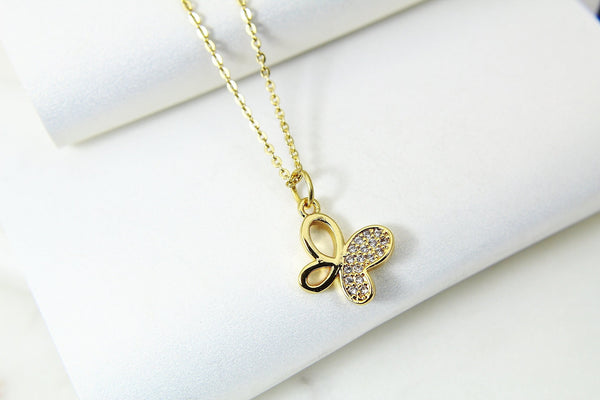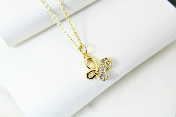 This is a beautiful cubic zirconia butterfly pendant on the 18K Real Gold Plated 17.7" chain,