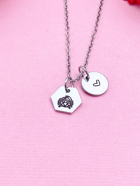 This is a unique engraving Cancer Crab sign and initial charm on stainless steel 18 inches necklace chain