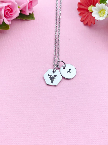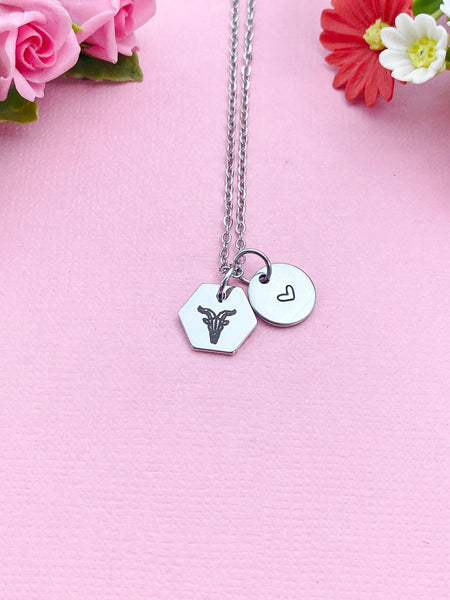 This is a unique engraving Capricorn Sea Goat sign and initial charm on stainless steel 18 inches necklace chain