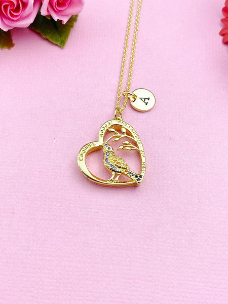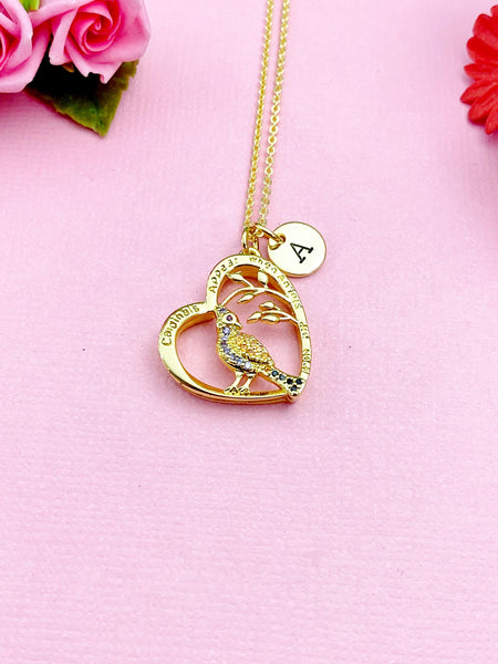 This is gold tone Cardinal Heart charm with hand stamped initial charm on brass/stainless steel 18 inches chain.