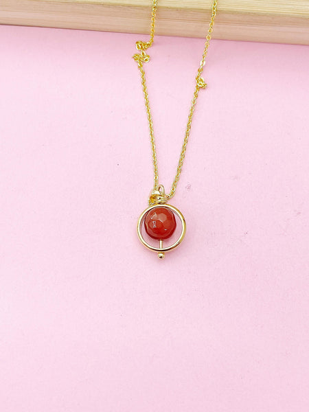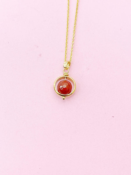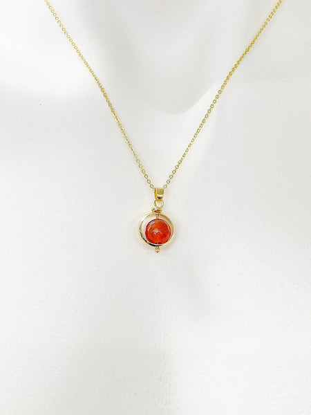 This is gold tone natural Carnelian with alloy bead frame charm on gold plated stainless-steel/brass 18 inches chain necklace.
