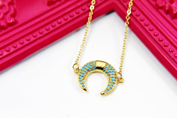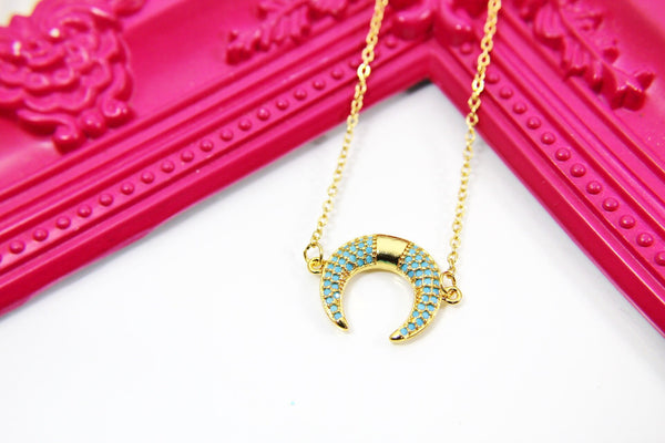 Crescent Moon Necklace, Gold Crescent Moon Cubic Zirconia Necklace, Birthday Gift, N4214