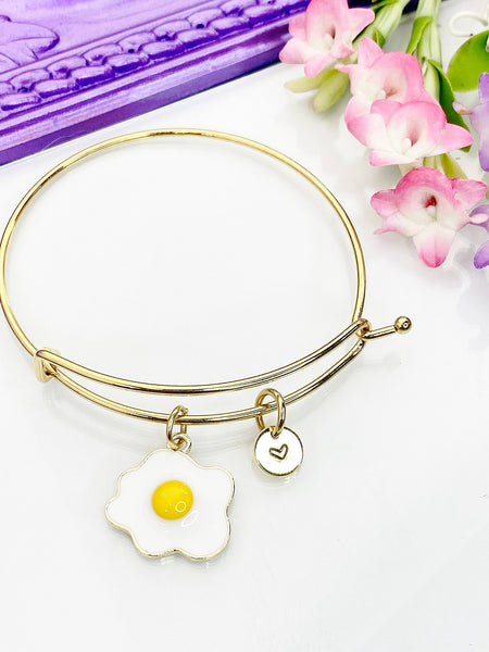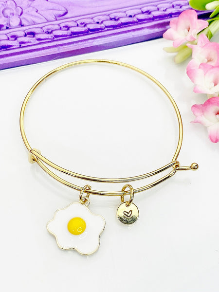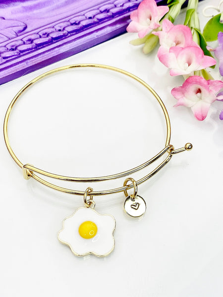 Egg Bracelet, Gold Star Egg Charm Bangle, Personized Initial Bracelet,