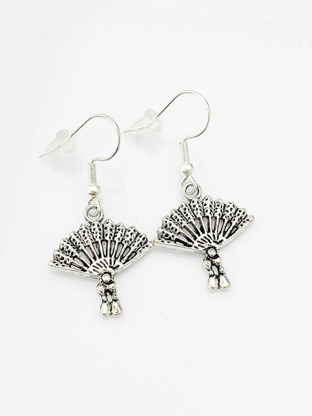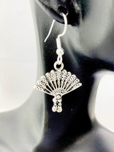 Fan Earrings, Vintage Chinese Hand Fan Charm Jewelry, Birthday Gift, Hypoallergenic, Stainless Steel Dangle Earrings,