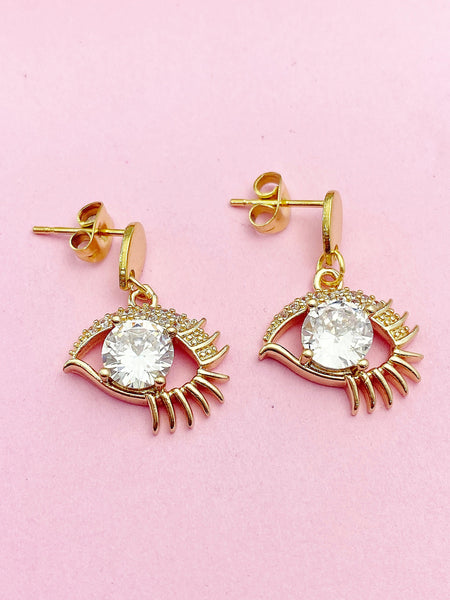 This is gold tone eye charm on stainless steel earring.