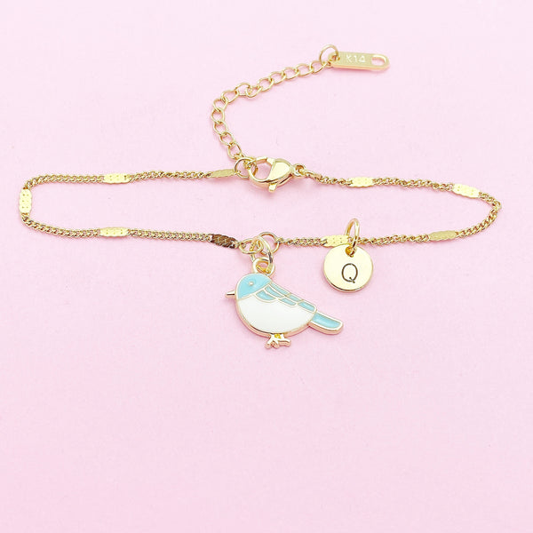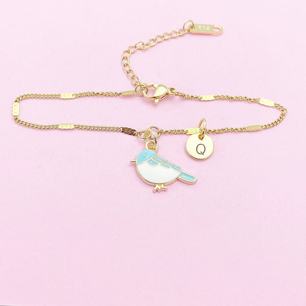 Gold Blue Bird Bracelet, Blue Sparrow Bird Watcher Gifts Ideas, N3296B