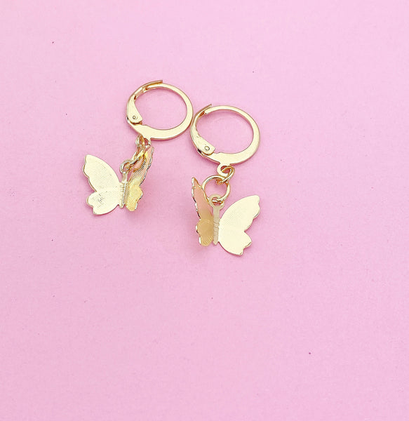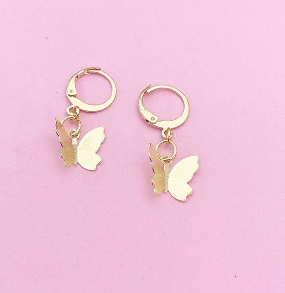 This features a gold-tone butterfly charm on a stainless-steel earring.