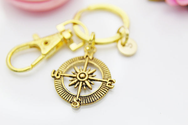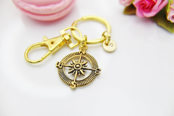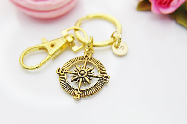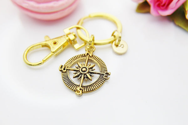 Gold Compass Keychain, Best Friends Gift, Personalized Gift, Graduation Gift, Christmas Gift, Thank You Gift, Appreciation Gift,