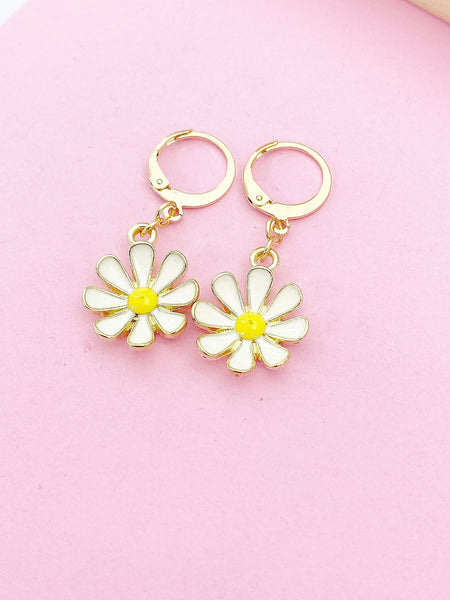 These are gold-toned Daisy Flower charms with stainless steel ear hooks.