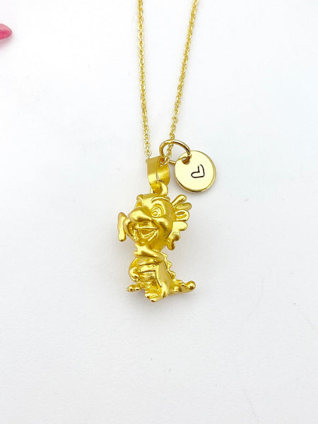 This is a gold -tone Dragon Zodiac Signs charm with hand stamped initial charm on brass/stainless steel 18 inches chain.