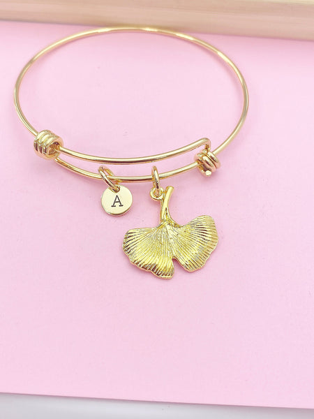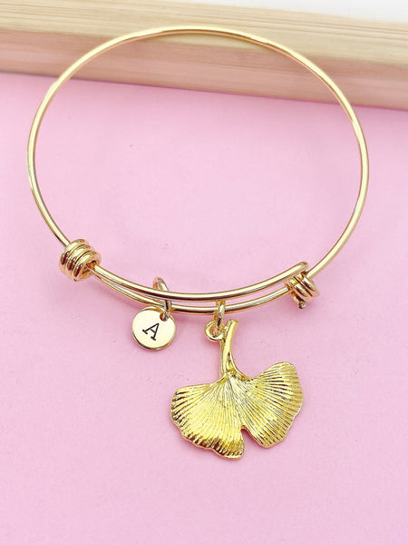 Gold Gingko Ginkgo Leaf Charm Bracelet Nature Gifts Ideas Personalized Customized Monogram Made to Order Jewelry, N5484