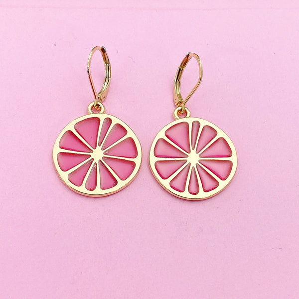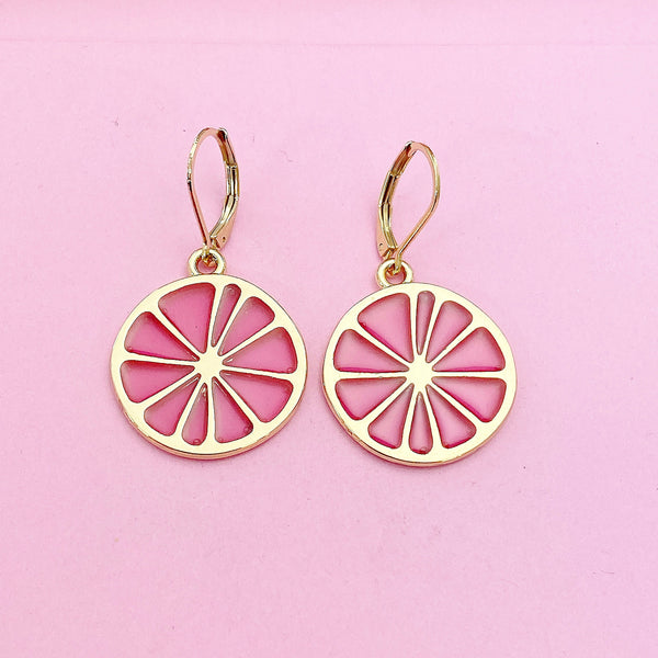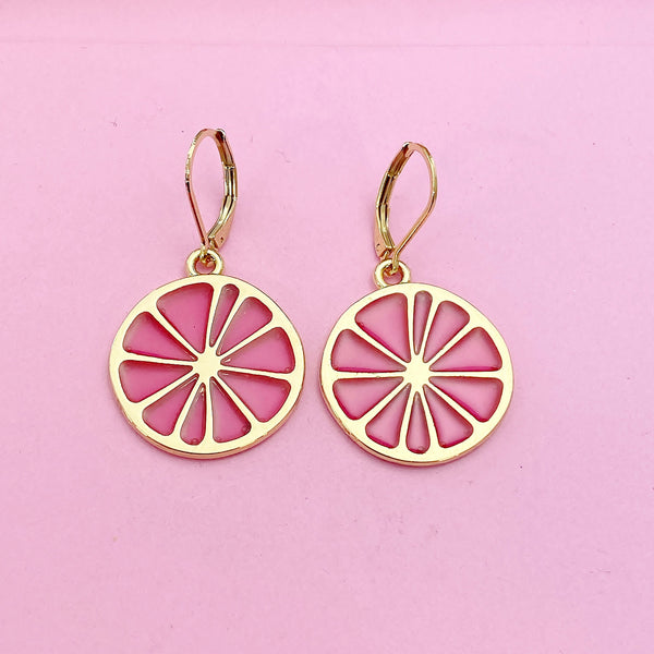 These are gold-toned Grapefruit on stainless steel ear hooks.
