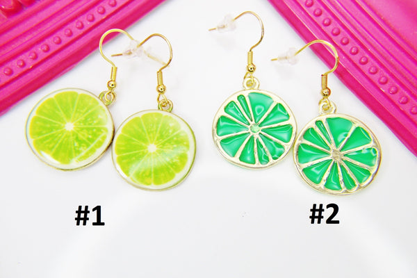 Gold Green Lime Charm Earrings, Beautiful Lemon Slice Earrings, Fruit Jewelry,