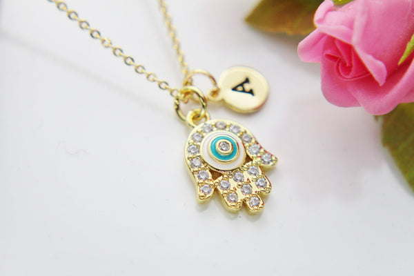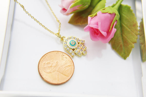 Gold Hamsa Evil Eye Necklace, Hamsa Evil Eye Charm, Personalized Gift, N3483