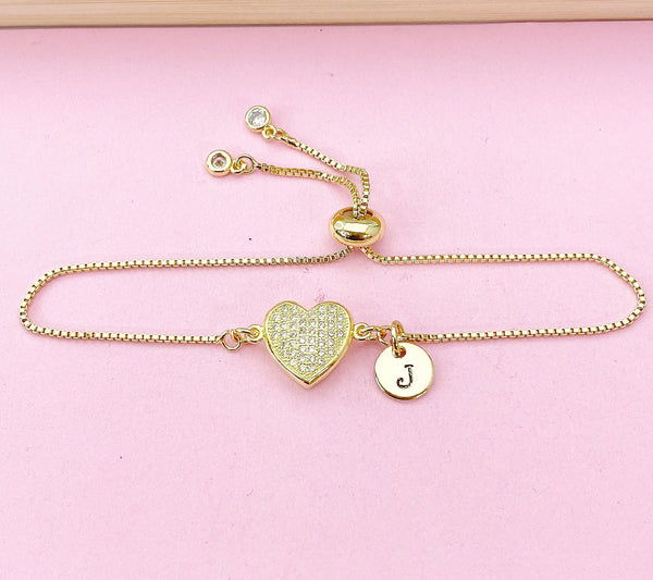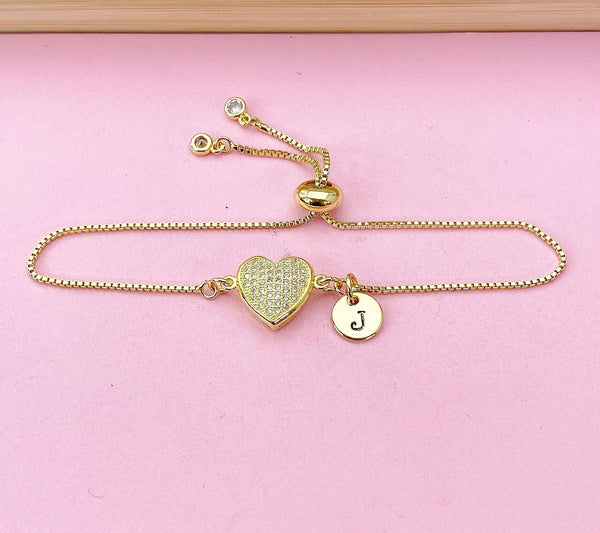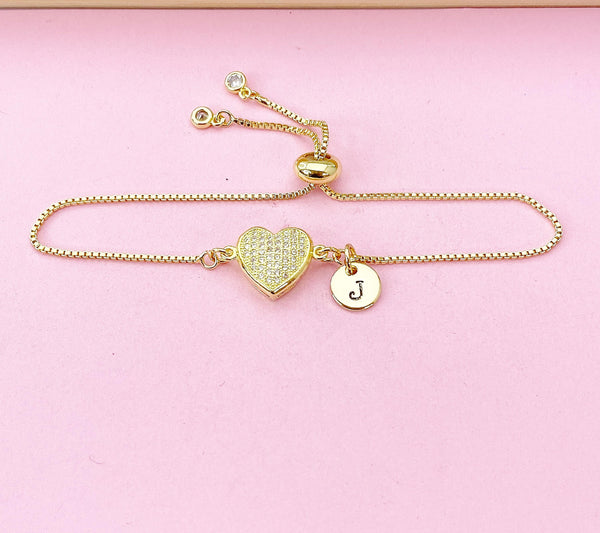 This is a gold-tone heart charm with hand stamped initial charm on stainless steel chain.