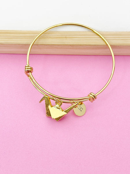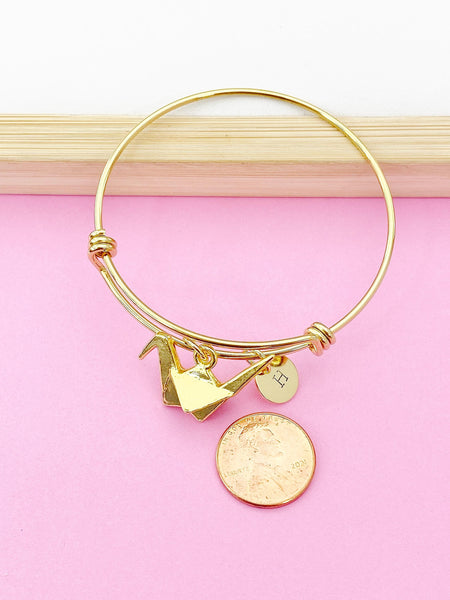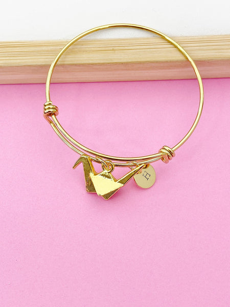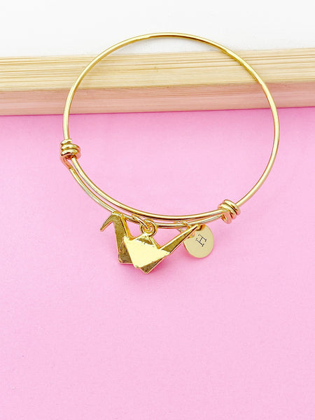 Gold Japanese Paper Bird Crane Bracelet, Personalized Gift, N1470