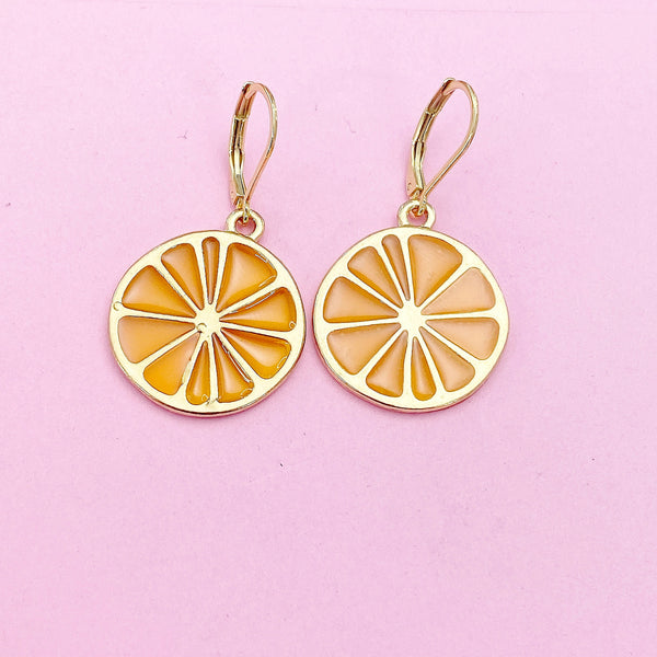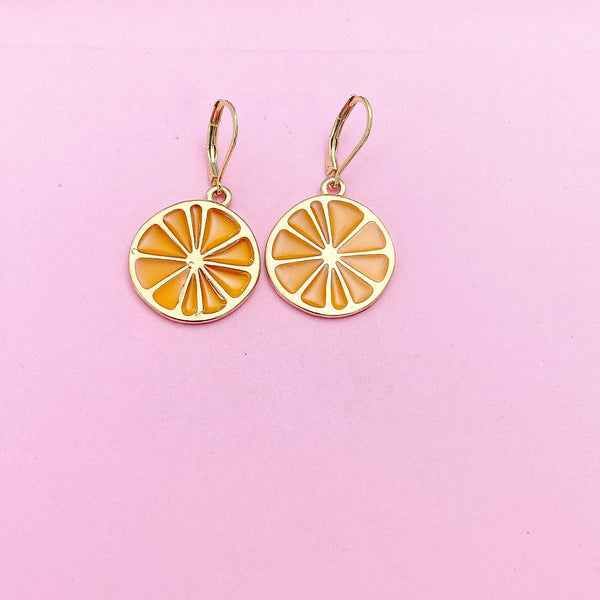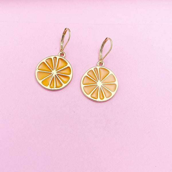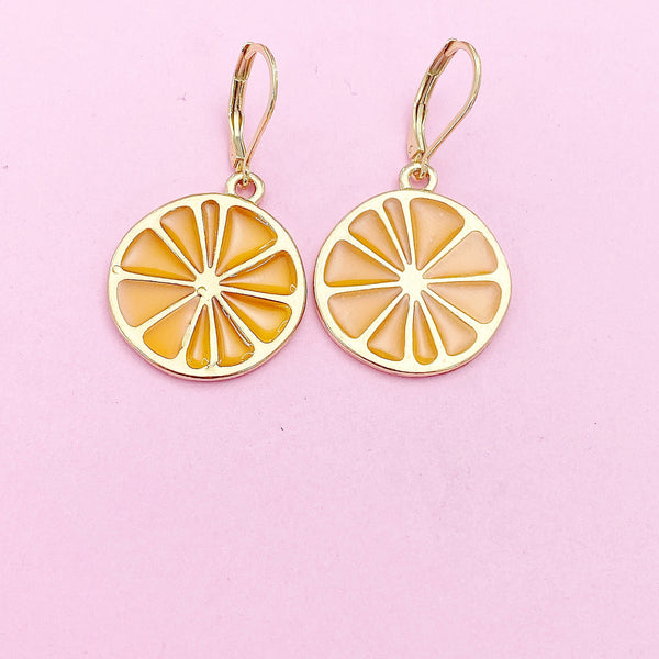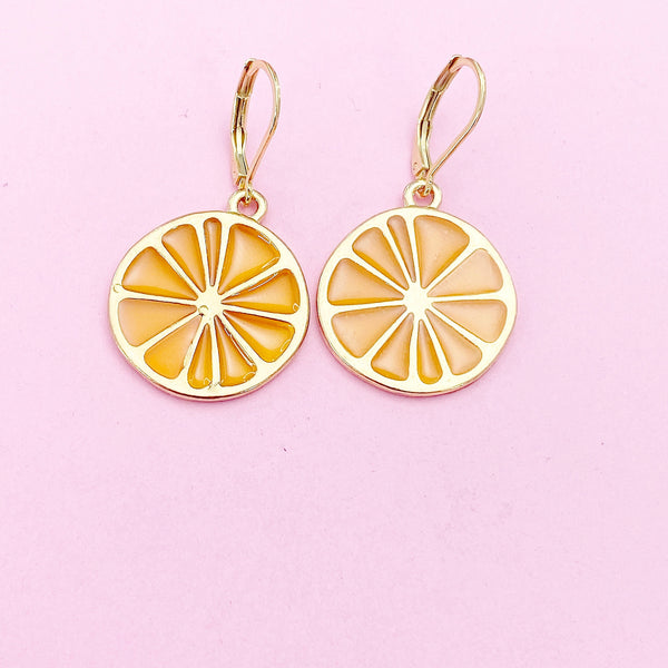 These are gold-toned Lemon Slice on stainless steel ear hooks.