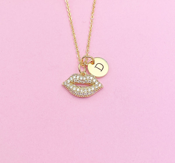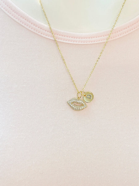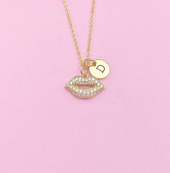 Gold Lip Charm Necklace Makeup Artist School Gift Ideas Personalized Customized Monogram Made to Order, AN1552