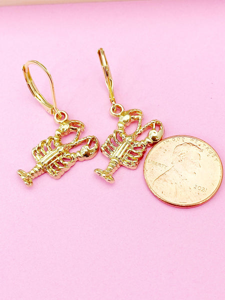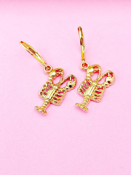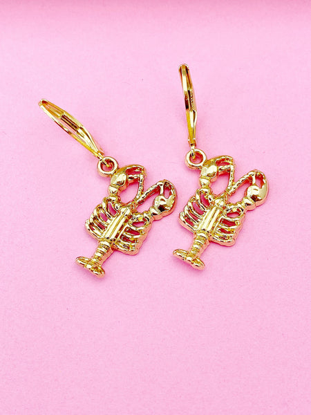 These are gold-toned lobster charms with stainless steel ear hooks.
