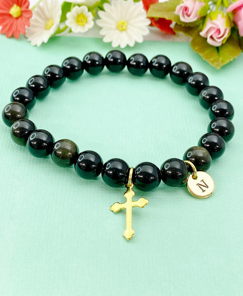 Natural Golden Sheen Obsidian Bead Stretch Bracelets