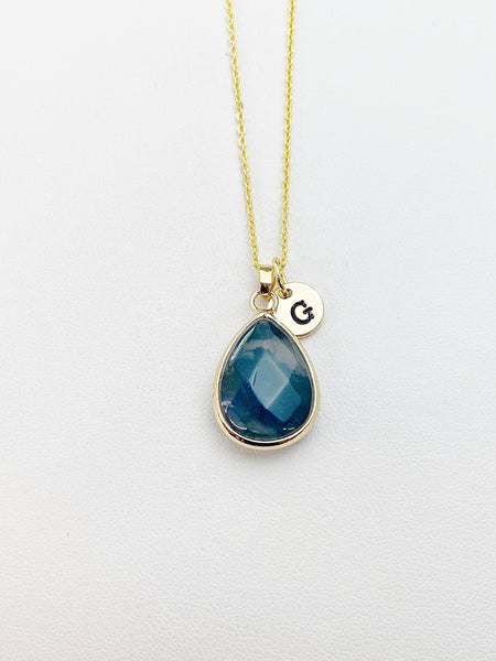This is gold tone Indian Agate charm with hand stamped initial charm on brass or stainless-steel chain.