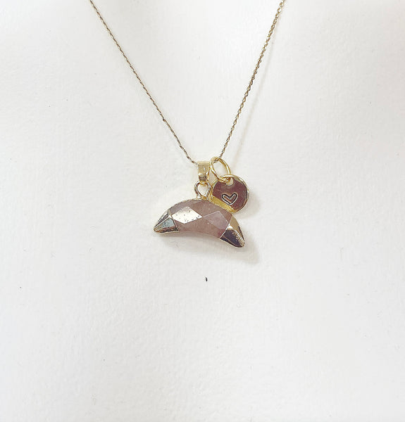 This is gold tone natural strawberry quartz charm with hand stamped initial charm on brass or stainless steel 18 inches chain.