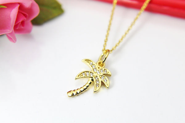 Gold Palm Tree Necklace, Coconut Tree Necklace, Beach Jewelry, CZ Diamond Jewelry, Dainty Delicate Jewelry, Minimal Necklace,