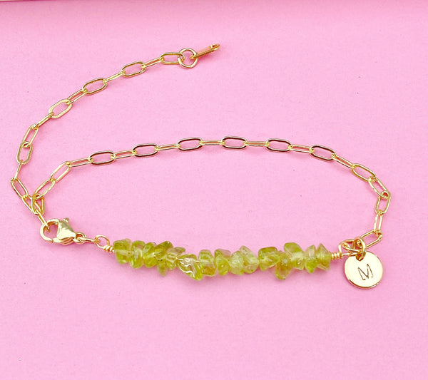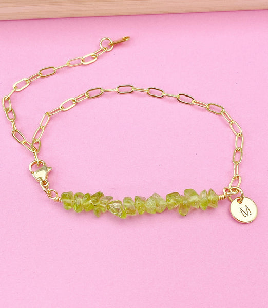 Gold Peridot Bracelet Natural Gemstone Wedding Bridesmaid August Birthday Gifts Ideas Personalized Customized, N3980