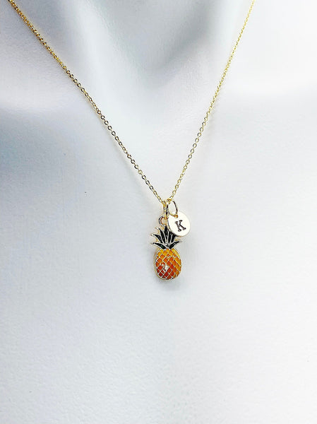 Gold Pineapple Necklace, Pineapple Tropical Fruit Gifts, Valentine Gift, Birthday Gift, Personized Initial Necklace,