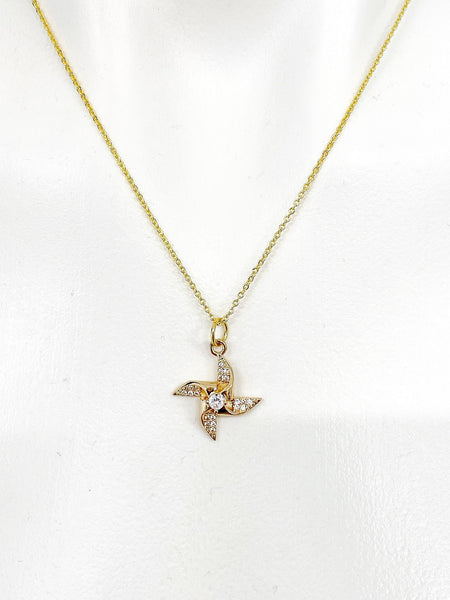 ♥ Pinwheel Pendants, Brass Micro Pave Clear Cubic Zirconia Pendants, Long-Lasting Plated, Cadmium Free & Lead Free, Windmill, Light Gold, Size: about 20.5mm long, 17.5mm wide, 6mm thick,