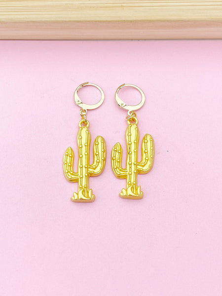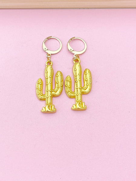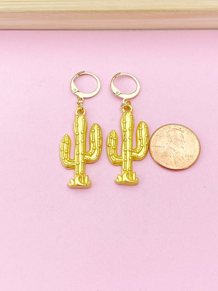 ♥ Cactus, Alloy Pendants, Matte Style, Cadmium Free & Lead-Free, Real 14K Gold Plated, 33x16x3mm