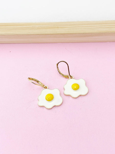 These are gold-toned Poached Egg charm on stainless steel ear hooks.