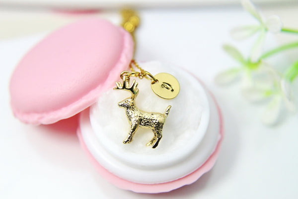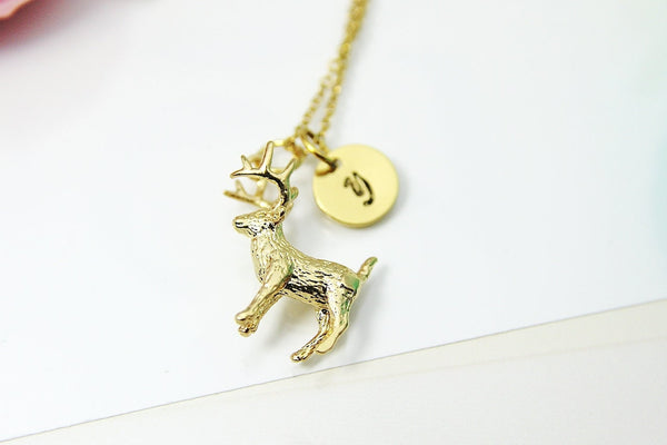 This is a gold-tone 18K gold plated brass deer pendant with hand-stamped initial charm on an 18K gold plated ultra-durable 17.7 inches chain. Top Quality, Happiness Guarantee!